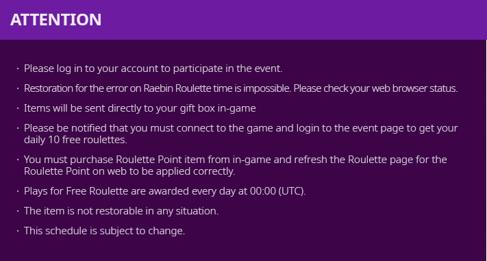 Go to Raebin Roulette (Minimum of 100 R.P Required)
